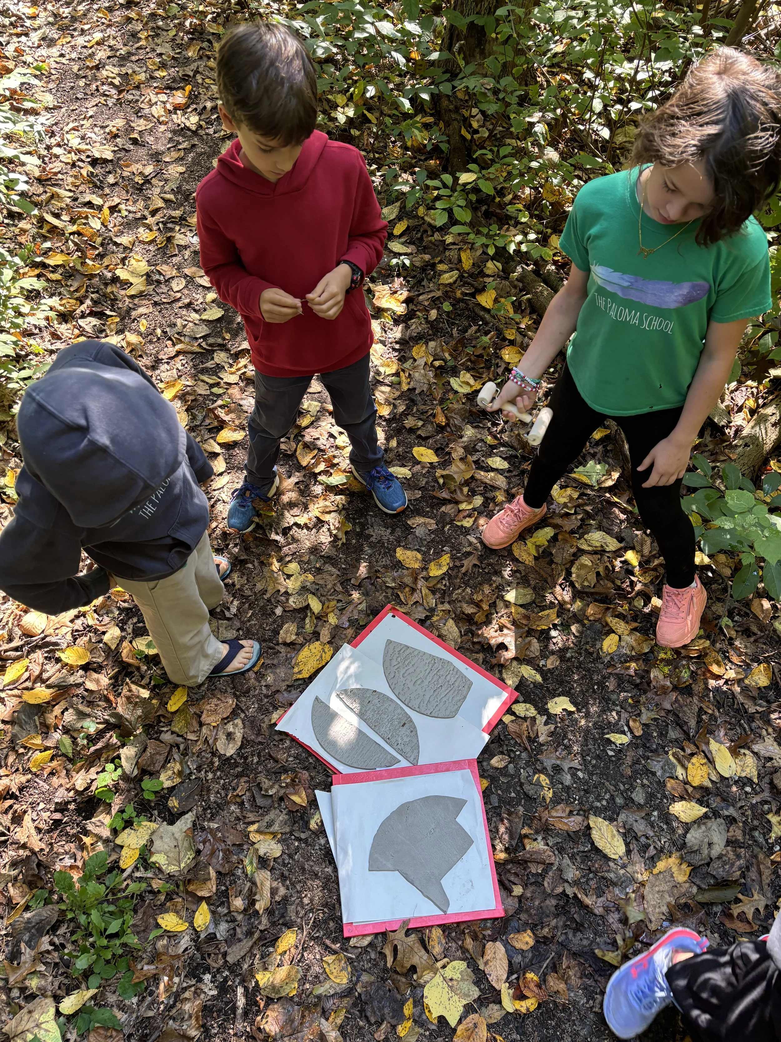 Once back at the center, the participants will create a composition of the identification markers in a 12-inch diameter circular format. Each participants circle will include: the botanical name of the tree, a bark print, leaf print, a fruit print, a leaf bud/twig print, and the flower. The elements that are not available to us in the woods at this time of year—such as the flower or fruit—will be represented by a botanical line drawing using a clay surface technique called “sgraffitio.”